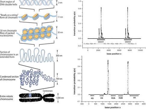 活细胞中的基因组DNA并非静态的遗传信息载体。对于中温生物,其基因组DNA通常处于负超螺旋态的非平衡态,负超螺旋对DNA分子的结构及功能有显著影响。我们详细研究了处于该状态的DNA的力学性质,计算了真实DNA序列局域解链(local denature)的特征。研究发现,整体拓扑约束会导致DNA不同解链区域之间存在着长程相互作用。通过与基因库数据的比较和分析,进一步发现这种长程相互作用与基因转录调控之间存在着显著的统计关联。本工作首次从理论上提出了DNA负超螺旋参与基因转录调控的一种长程变构机制(long-range allosteric)[ J. Phys.: Condens. Matter, 2005,17:S2853-S2860]。